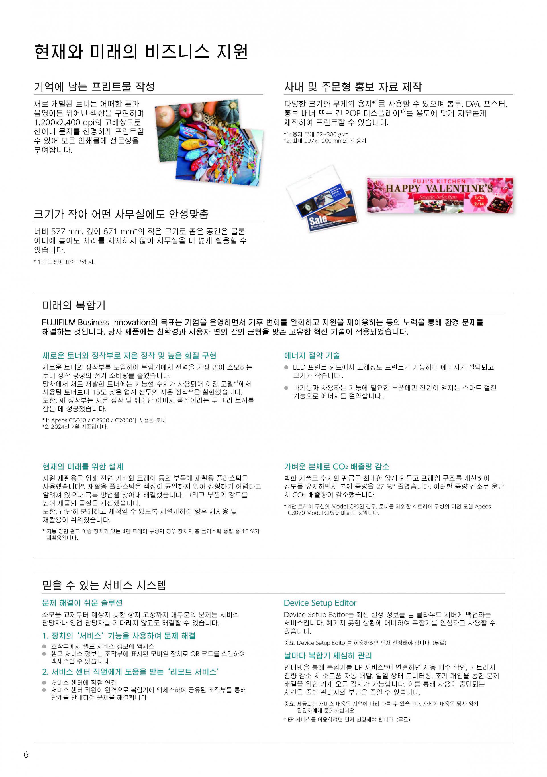 - 친환경 설계 : 저온 정착 토너로 에너지 절감, 스마트 절전 센서와 빠른 부팅으로 전력 소모 최소화, 재활용 플라스틱 사용 및 경량화 설계로 CO₂ 배출량 감소