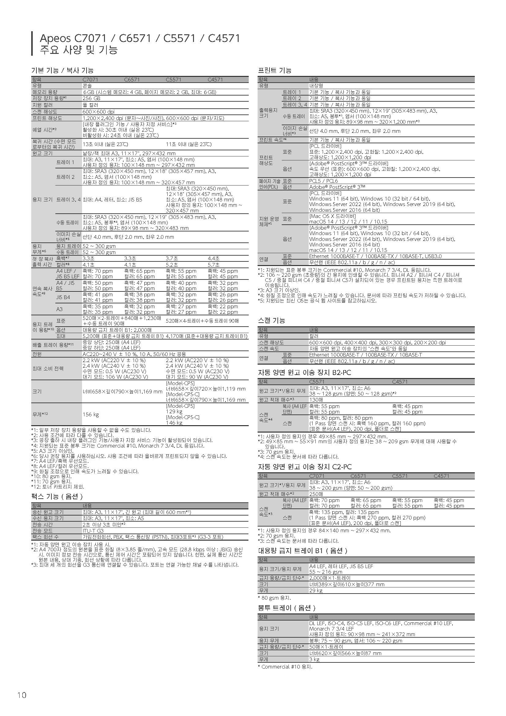 Apeos C6571은 분당 65페이지(A4 기준) 컬러·흑백 인쇄 속도를 갖춘 고성능 A3 컬러 복합기로, 빠른 출력과 안정성을 동시에 제공합니다.