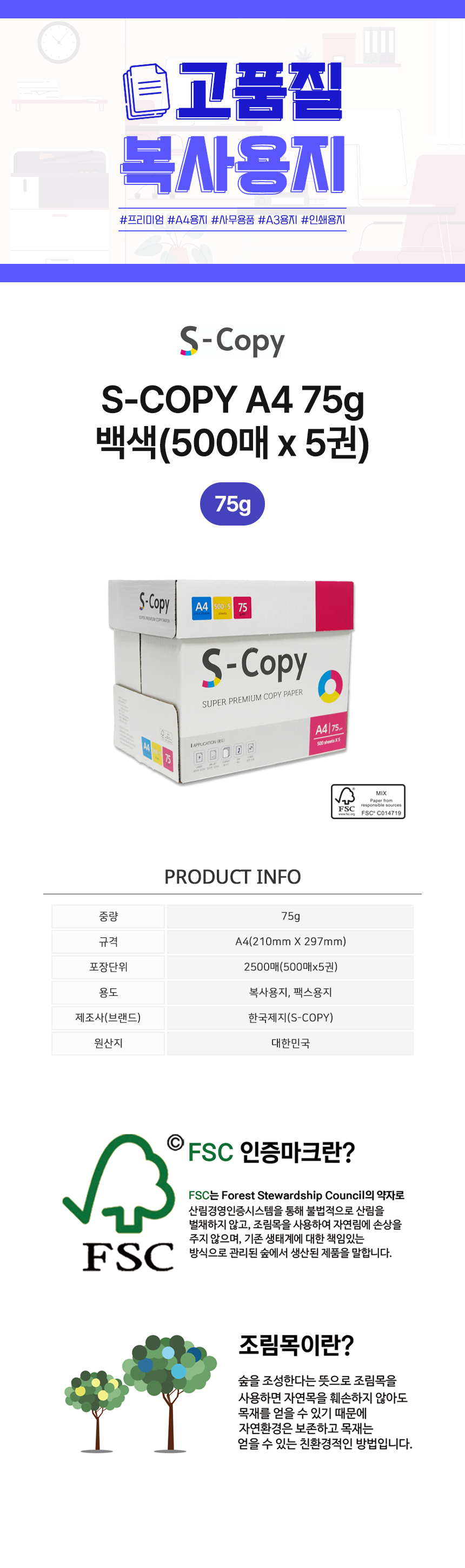 에스카피 A4 복사용지 75g (500매 x 5권)